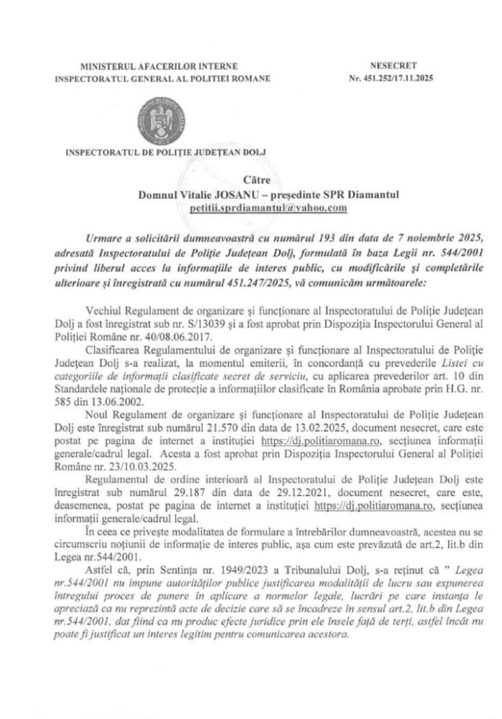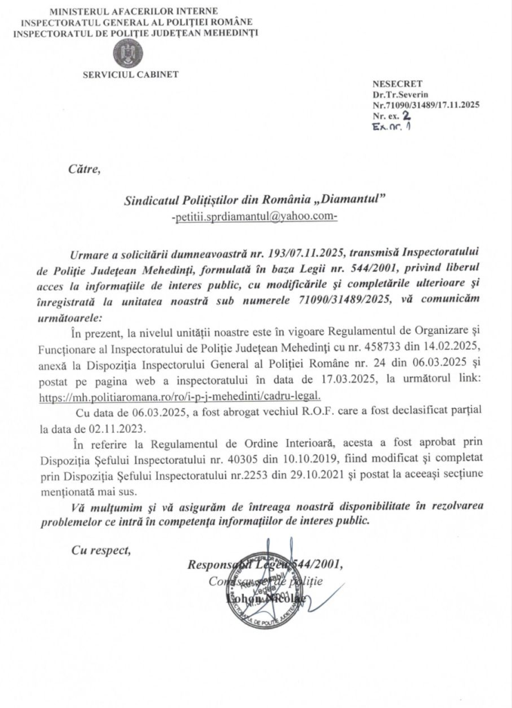 Cad ultimele bastioane ale comunismului in MAI-ul condus de Despescu! ROF-urile inspectoratelor judetene de politie, secretizate de pe vremea Militiei, au iesit la lumina, datorita muncii SPRD incepute in 2023! Declasificarea ROF-urilor a provocat si reactiile animalului ranit: doua destituiri pentru Vitalie Josanu, presedintele sindicatului!