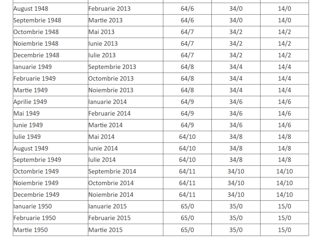 - Stagiul complet de cotizare este de 35 de ani atât pentru femei, cât și pentru bărbați.